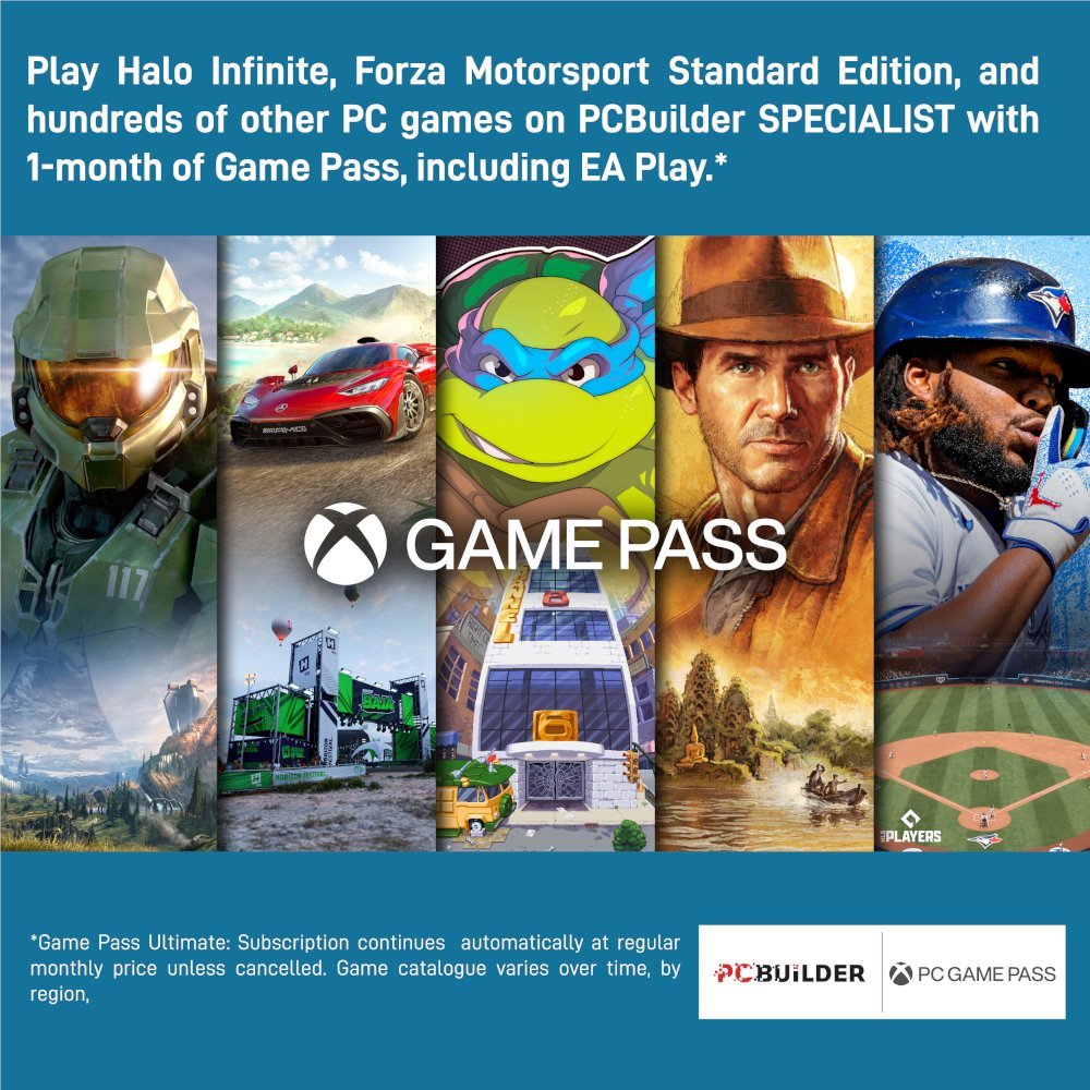 Play over 100 high-quality PC games, plus new and upcoming blockbusters on day one like Halo Infinite, Forza Horizon 5, and Age of Empires IV with your new SPECIALIST Gaming PC and one month of Game Pass-including EA Play. With new games added all the time, there’s always something new to play.