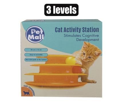 Pet cat toy pyramid with ball 3 levels