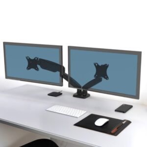 The Port Desk Mount Dual Monitor Display Arm is a display arm for one monitor, with widescreen compatibility up to 32”. The arm is fully articulated for optimal positioning. It supports heavy screens up to 8kg. Its ergonomic design helps reduce musculoskeletal disorders. The passage of the cables inside the arm frees up space on the workstation. You have the possibility to orient your screen as you see fit (portrait or landscape). Installation is quick thanks to its removable VESA mount (100x100mm and 75x75mm). There are two methods to attach the arm to your desktop, you can either clamp it on or use a grommet base.