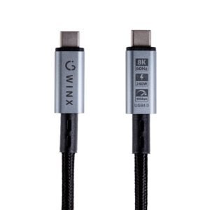 The WINX LINK Pro Type-C 2m Cable delivers exceptional 8K visuals, ultra-fast data transfer, and 240W Power Delivery 3.1 fast charging, making this perfect for Type-C laptops and other compatible devices. It ensures fast connections for charging and 40Gbps data transmission speed, allowing you to transfer large files quickly and effortlessly. With its sleek and durable design, this cable is built to last while staying flexible and lightweight.